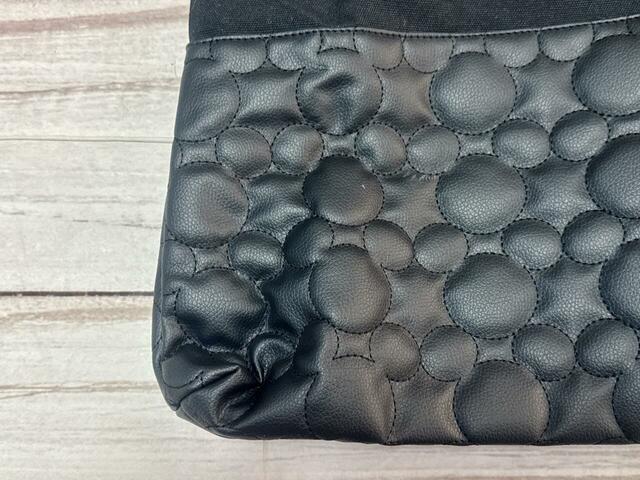 レザー調の生地は、なんとミッキーのお顔シルエットのキルティング!キルティングのぷっくり感がなんともキュート♪