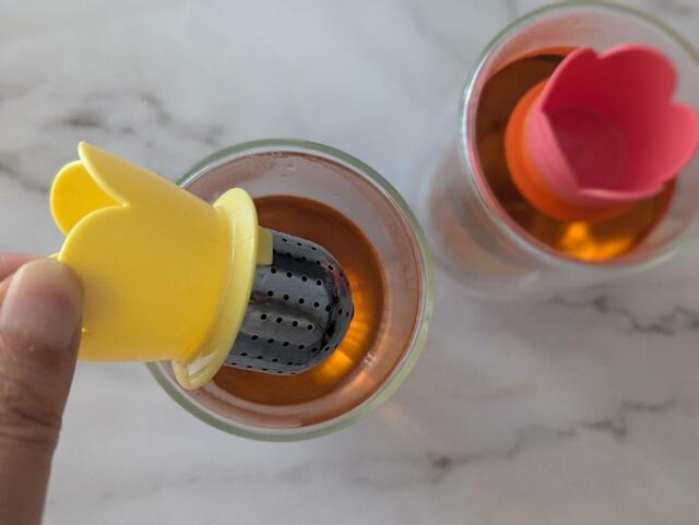 紅茶が好みの濃さになったら、花びら部分をつまんで取り出せばOK。