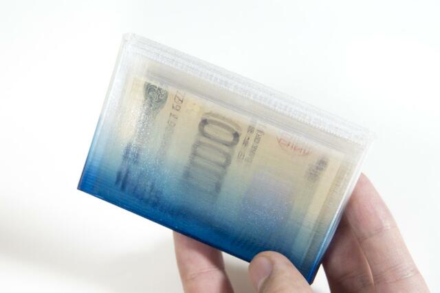 さらに3つ折りにしたお札を2枚入れてみるとこんな感じ。