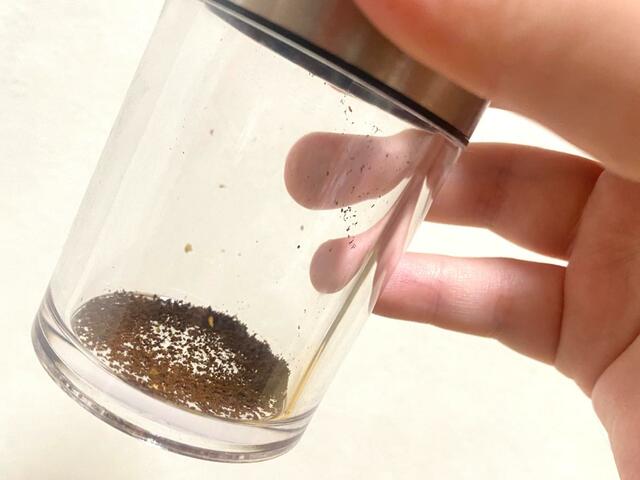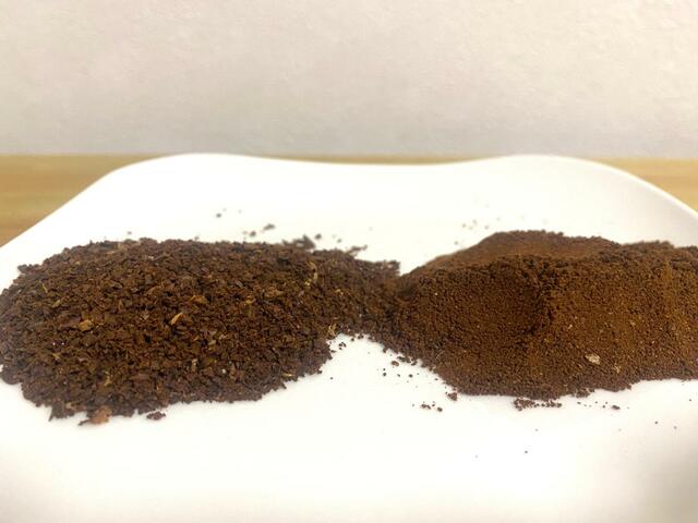 調節つまみを反時計回りに3回転させて挽いたものと、最も締めた状態で挽いたものを比べてみました。