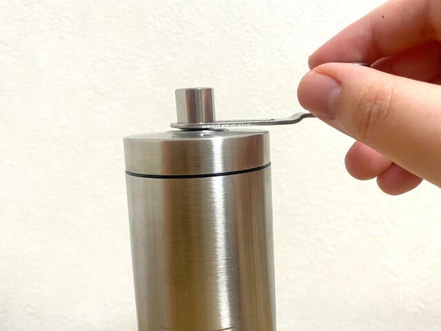 ミニコーヒーミルには調節つまみがついていて、コーヒー豆の粗さを調整できます。