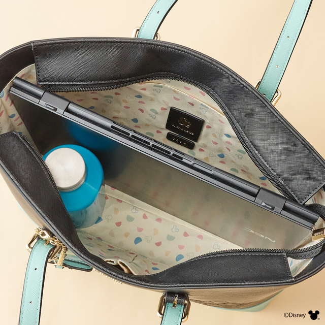 トートバッグは、14インチサイズのパソコンやボトルなども収納でき、通勤、通学にも活躍してくれるサイズ感。