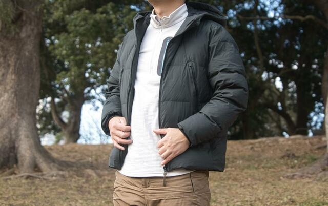 フィット感のあるアウトドアメーカーのものと比べると、シルエットはゆるめな印象。