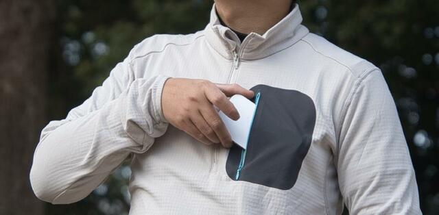 胸元には、ワンポイントでジッパーポケットが。
