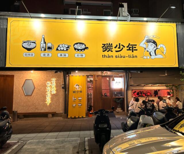 街の中心地から少し外れた大通りまで歩くと、ひときわ明るい看板が目に入った。その名も「炭少年」。中華式のふりがなで「タン シウ リェン」とあるので、どうやら台湾語読みらしい。