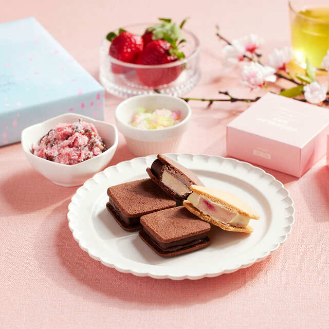 看板商品、生チョコクッキーサンド「ショーコラ」の、定番フレーバー2種と期間限定フレーバー2種を詰め合わせた春限定パッケージ「ショーコラ・スプリングセット4個入」(1,728円)に注目です。