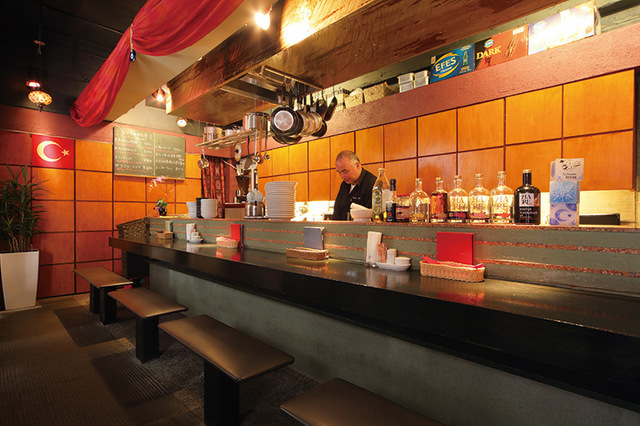 エフェスビール¥650円や、ライオンのミルクと呼ばれる酒・ラク¥650~、トルコワインも。夫婦で営む20席のダイニングで、カウンターに座るとトルコがグッと身近な国になる。