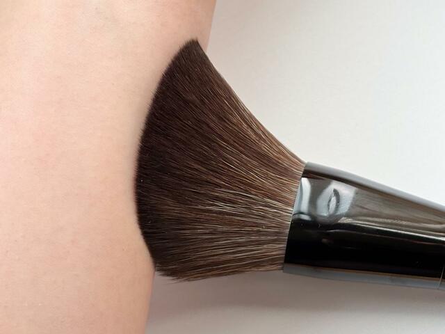 繊維毛の一本一本にくびれをつくる「極細加工技術」によって粉含みのよさを実現。これ一本でフェイスパウダーにもチークにも使えますよ。