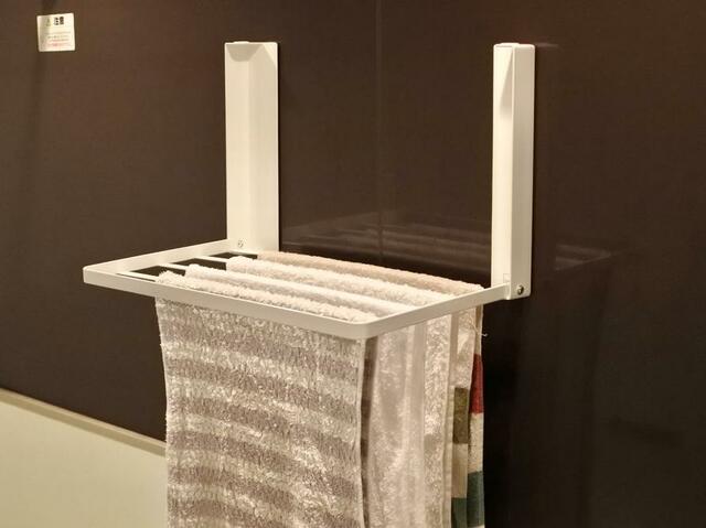 浴室乾燥でも使えました! わが家のお風呂の壁はマグネットがつくので、フェイスタオルを干すのにも◎。