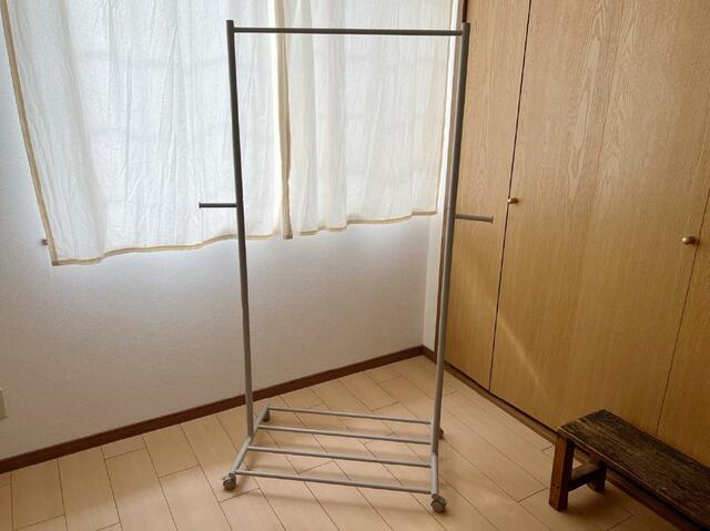 キャスター付きのハンガーラックで、シンプルなデザインとどんなインテリアにもなじむ落ち着いたカラーが購入の決め手でした。