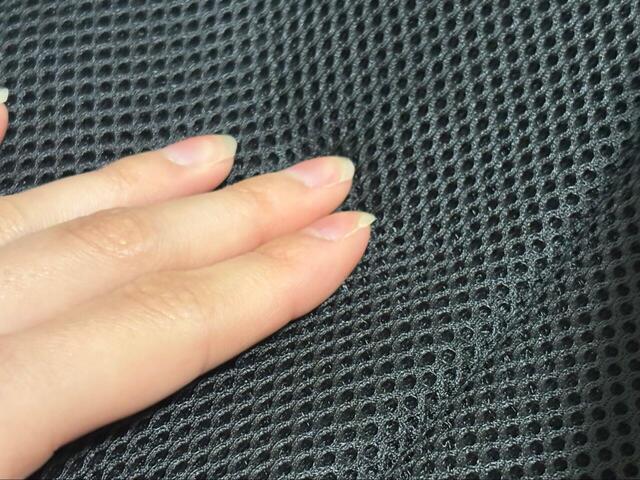 素材は撥水性のある高密度ポリエステル。実際に水を垂らしてみたところ、すぐに生地の表面で水を弾きました!リュックの内部に染み込むこともなく、これなら小雨程度なら安心して使えそう。