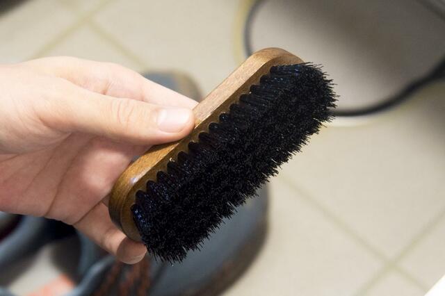 少し硬めの合成繊維でできたブラシなので、革やスウェードなどの柔らかい素材には使わない方が良さそうかな~という感じ。