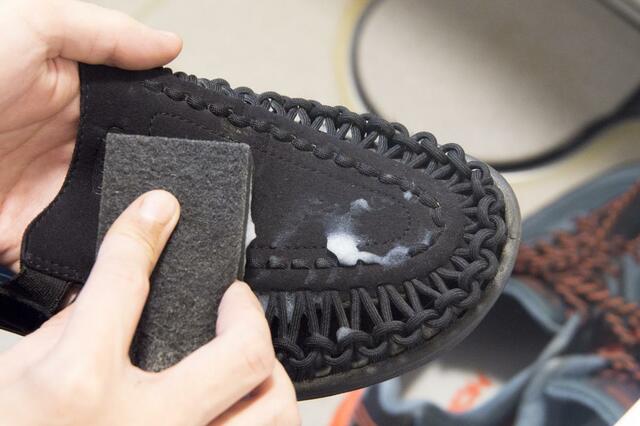 こちらにキャンバス、布地用のスニーカークリーナーを出して。