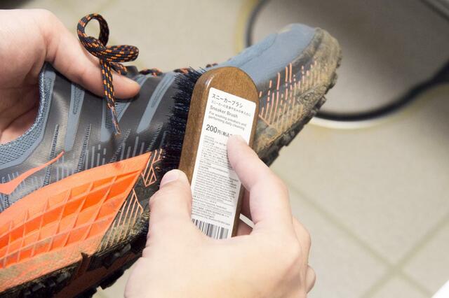 まずはこちらの「スニーカーブラシ」で大きな土などを落としていきましょう。