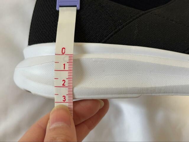 靴底は約3cmの厚みがあり、地面からの衝撃を和らげてくれます。クッション性は特にありませんが、柔らかめの靴底で履き心地も歩き心地も良好。滑りにくい凸凹の靴底なので、普段使いには十分な性能です!