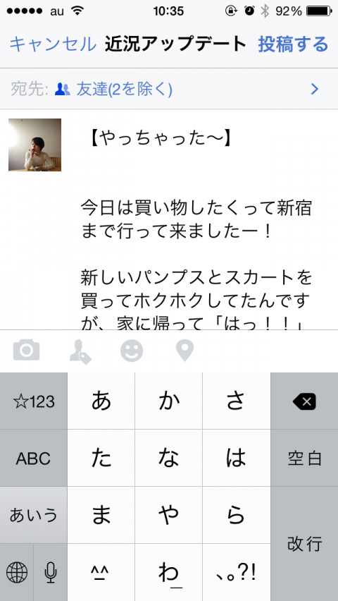 まず、あげる投稿の内容にタイトルをつけてみましょう! 例えば『今日電車で新宿に出掛けた時にiPhoneを落としてしまった』という本文の前に、【やっちゃった~】などとタイトルや煽り文をつけてみましょう。
