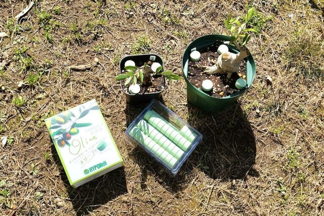 オリーブ専用肥料は土を弱アルカリに保って、三大栄養素(窒素・リン酸・カリ)や微少元素をオリーブに最適な割合で補ってくれます。