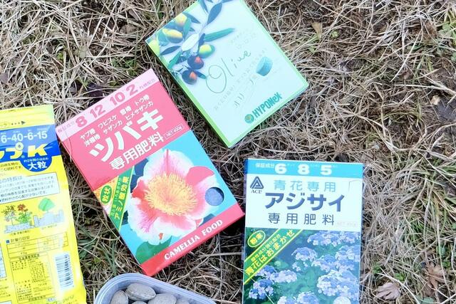 園芸の上級者は、樹種や花を咲かせたいなどの目的に合わせて、何種類かの肥料を組み合わせて使っています。