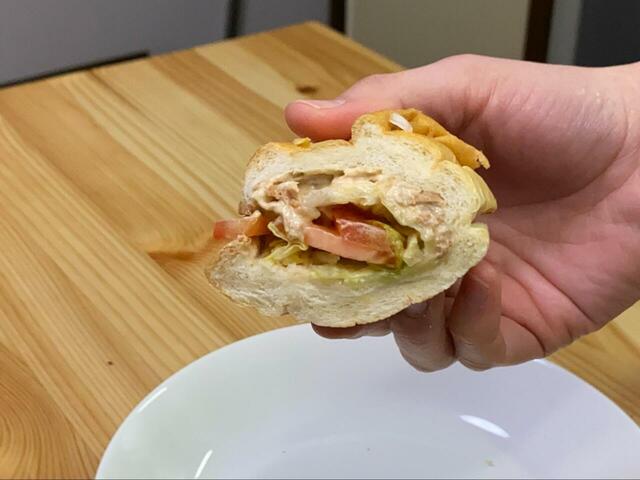 ツナマヨネーズとチーズの濃厚な組み合わせで、野菜に対してツナマヨが少なめに感じるかもしれませんが、その分、満足感はしっかりと感じられます。