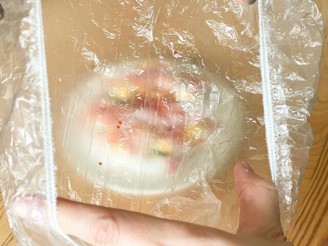 平皿に盛り付けてラップをすると、料理がぺったんこになったり、ラップにくっついてしまうのが気になっていました。