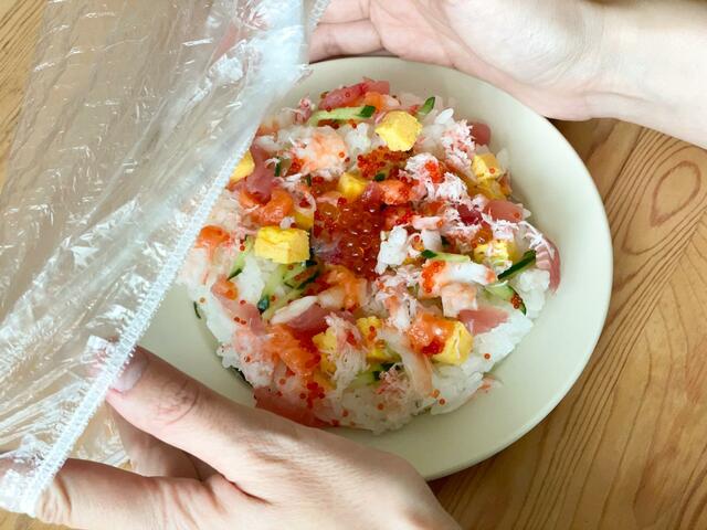 「袋状に広がるなら、料理が崩れないかも」と思い、ちらし寿司で試してみることに。