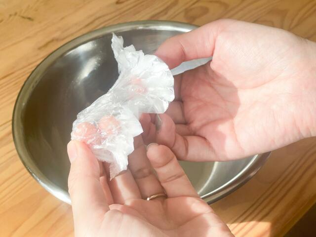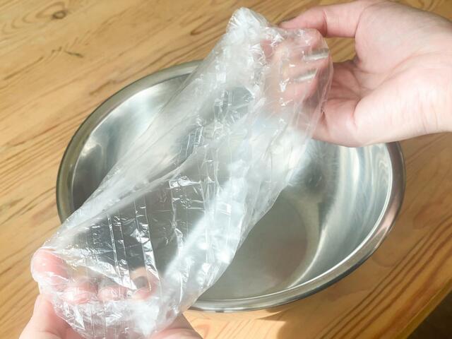 ボウルのフチに引っ掛けて、ぐっと伸ばしたら完了!