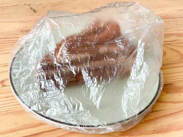 別の日には、食べきれなかったケーキにラップをしてみることに。