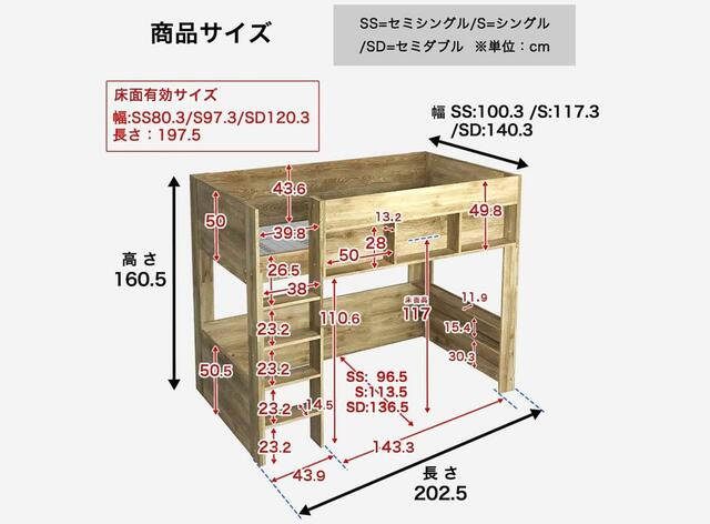 それを解決したのがネルコンシェルジュというブランドの「アシュリーシリーズ」。ナチュラルな見た目の「棚付き木製ロフトベッド」なんです。