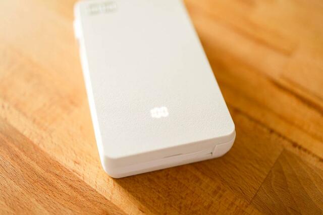 さらに表面にはタッチセンサーが付いており、触れると1%単位で残量が表示される仕組み。デバイスの充電中も残量を数字で表示してくれます。