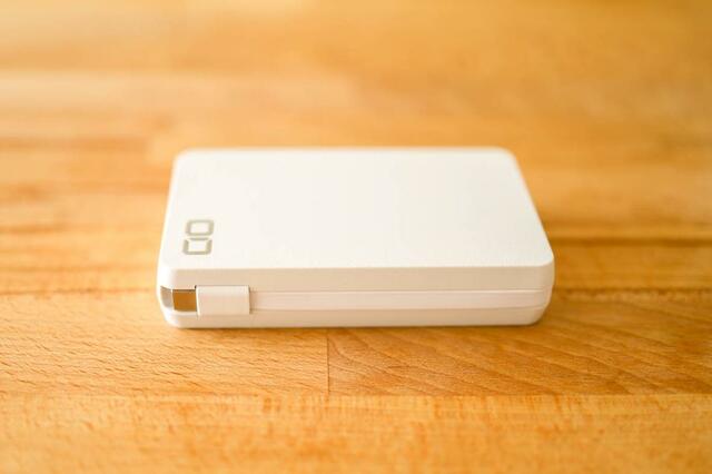 平たいUSB-Cケーブルが側面に収納されており、モバイルバッテリーとして使いたいときはこちらを引き出せばOKです。