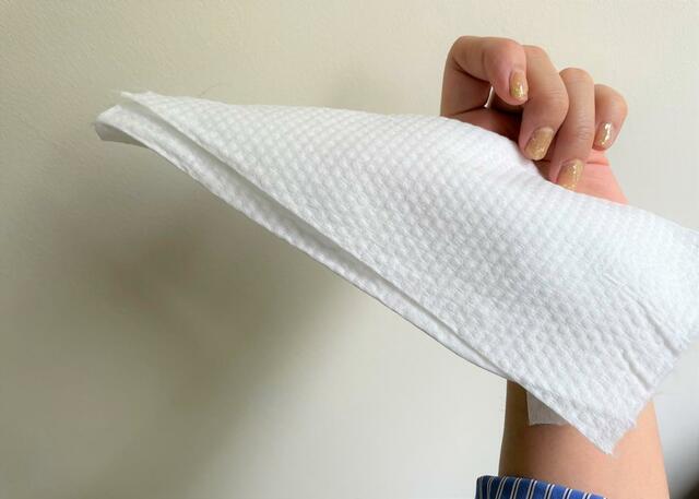 水分はしっかりふき取ってくれるのに、繊維が顔につかないのがストレスフリーです。