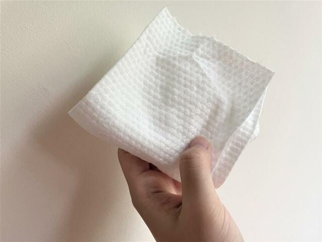 でも顔に当てるとふわっふわ~。やさしい肌触りで、ふき取り後の乾燥も感じません!