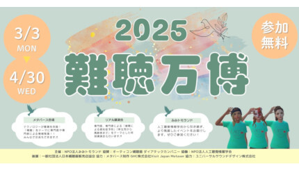 2025難聴万博は、「補聴」をテーマに専門医・専門家によるメタバース会場での情報提供を中心として、リアル会場(国立病院機構 東京医療センター)での講演も行われる。参加費は無料。