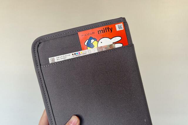 また、外側にもA5サイズが収納できるフリーポケットがついています。切手や振込用紙など、収納場所に困りがちなものを入れるのにピッタリ。