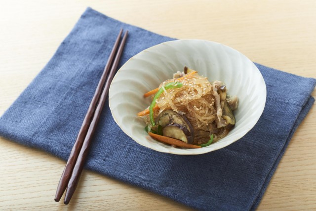 疲労回復、強壮作用があるとされているにんにくをきかせたチャプチェ。ビタミンB1を豊富に含む豚肉と組み合わせると、ビタミンB1の吸収や効果を高めます。
