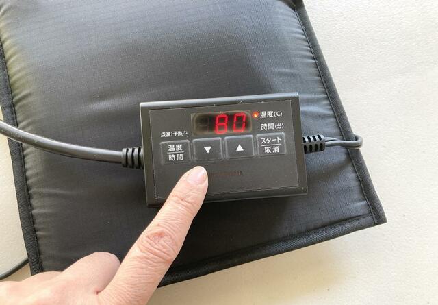 加熱温度は40~80℃で5℃刻み。加熱時間は10分までは1分ごと、2時間までは10分ごと、2時間以上は30分単位での設定が可能です。