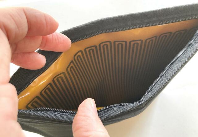 ジッパー付きのバッグ本体の内側に電熱線が張り巡らされています。