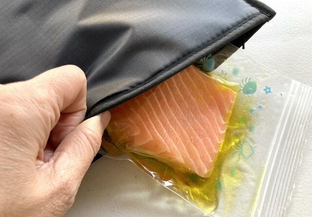一見100均で売っていそうなナイロンポーチにも見えますが、なんとこれが低温調理器なんです。