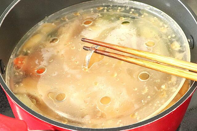 「調理具合が見える落し蓋」を使うと、鍋に入れるだけで落とし蓋が完成!