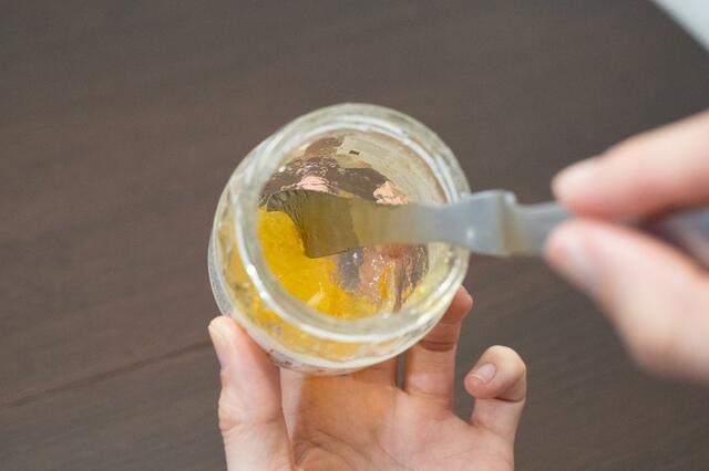 先端がビンの底やフチにフィットするから、残り少なくなってもすくいやすいです。