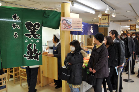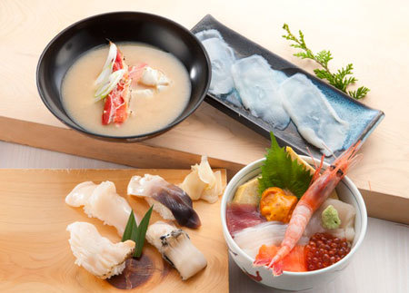 各日30食限定の北の握り欲張りセット(2,100円)は午前11時時点で完売でした。海鮮丼と4種の貝のにぎり、水ダコの刺身、カニみそ汁。たしかに並んでも食べたくなる内容ですね。巽鮨は24日までの出店です。
