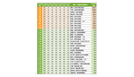 今年のトピックスは、物価高、家賃高騰のなかで、「船橋」「立川」「柏」「藤沢」などの郊外のターミナル駅が過去最高位を獲得したこと。「船橋」は14位、「立川」は15位、「柏」は19位、「藤沢」は23位につけ、リクルートは、買い物や通勤・通学などの利便性に加え、独自の魅力を持つこれらの街が再評価されつつあると分析する。
