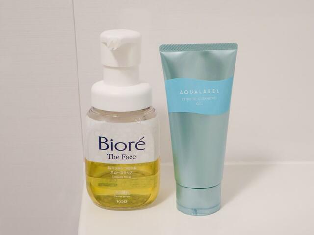 左から、「ビオレ ザフェイス 泡洗顔料 スムースクリア」、「アクアレーベル エステ洗顔ジェル」