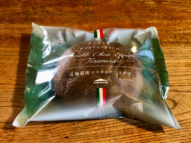 【シャトレーゼ ダブルシュークリームティラミス】さっぱり爽やかなティラミスクリームとほろ苦いコーヒーカスタードクリームの味わいが贅沢で美味しい