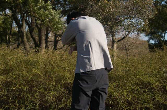 シャツ、パンツともにウールライクとあるように薄毛が生えているような素材のため、枯れ草の切れ端などがくっつきやすかったりします。
