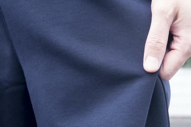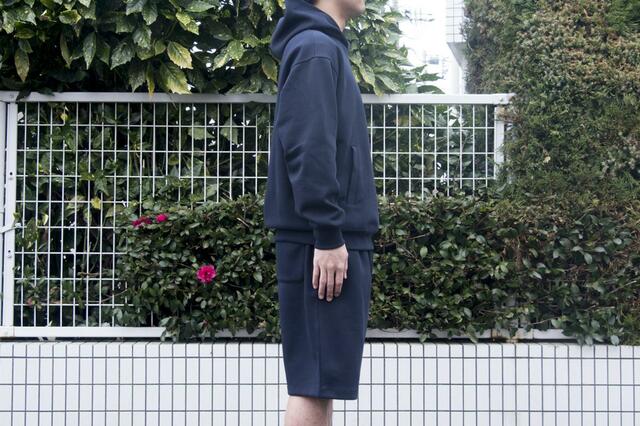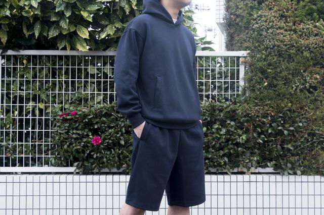 身長175cmでショーツ、パーカー共にネイビーのLサイズを着用しています。