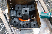 ガスバーナーを差し込める、着火用の穴があいており、着火剤を使わない炭火おこしが可能です。
