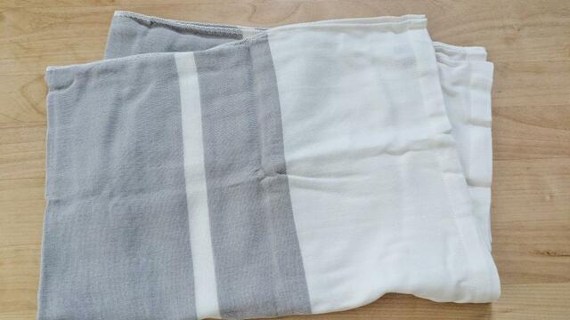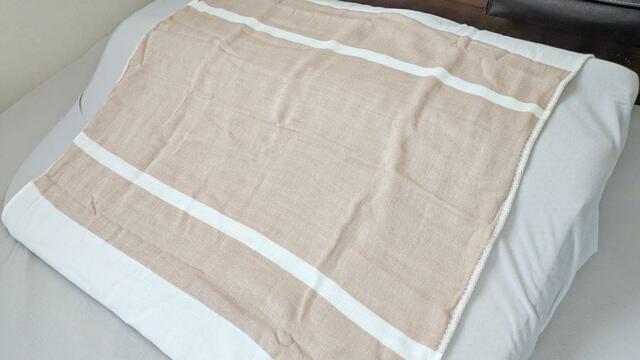 60×83cmと大きめなサイズで、ガーゼ素材。袋状ではなく、ランチョンマットを大きくしたような形状です。