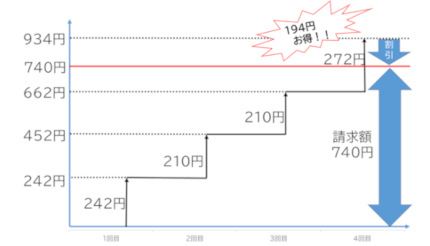 新サービスでは、同一のタッチ決済対応のカードや同カードが設定されたスマートフォンなどで、1日(始発から終電まで)に乗車した運賃の総額が740円を超えた場合、超過分の運賃を割り引く。