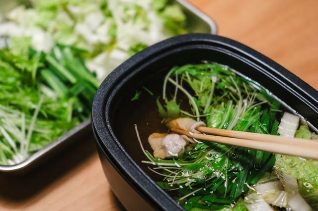 さらに、テーブルの上でも加熱できるから鍋料理でも大活躍。2人分まで入るサイズ感です。